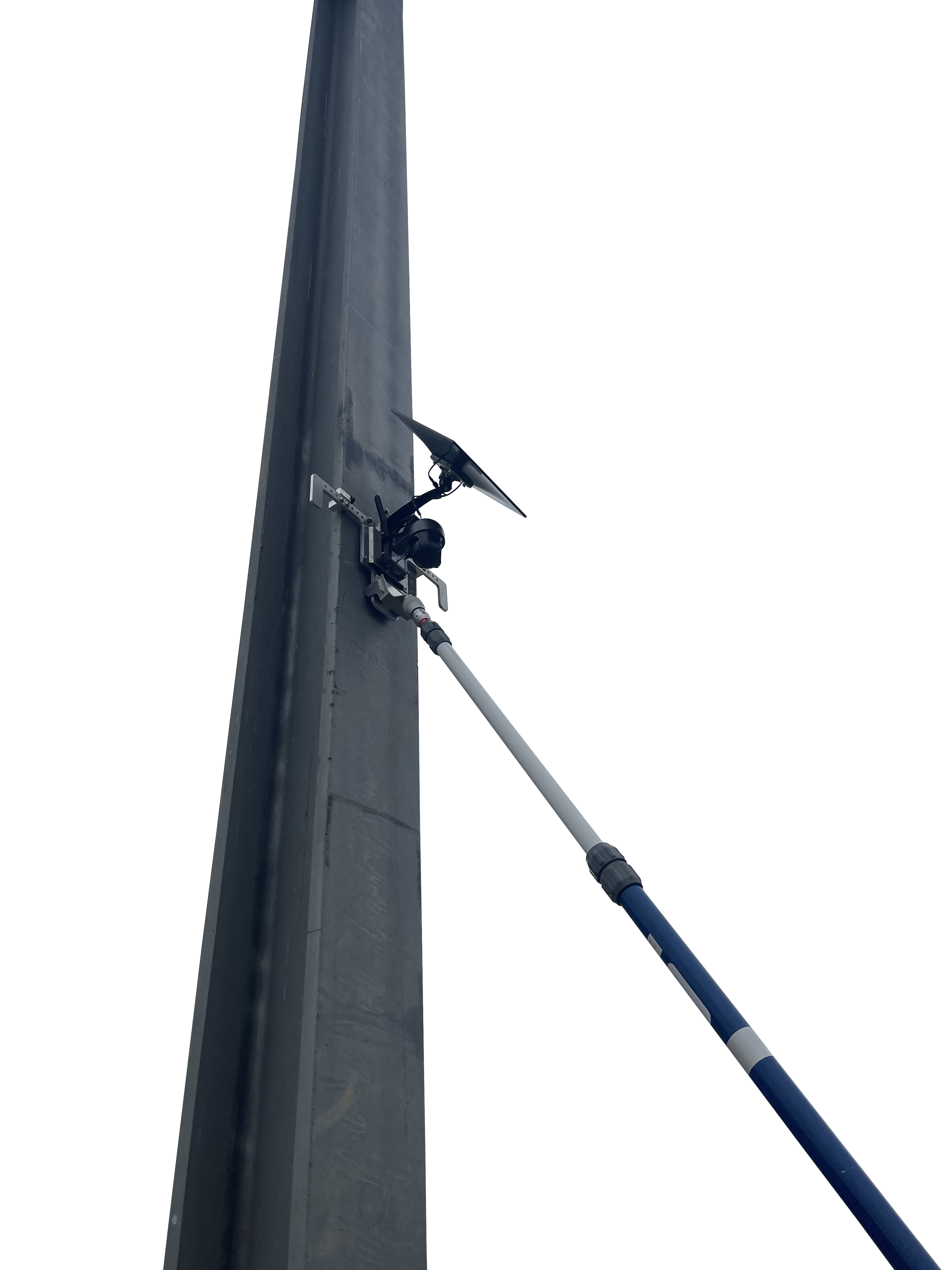• Caméra fixée sur support aimanté pour une installation depuis le sol avec une perche caténaire en utilisant l’outil de pose Réf : CLINALERTOP.